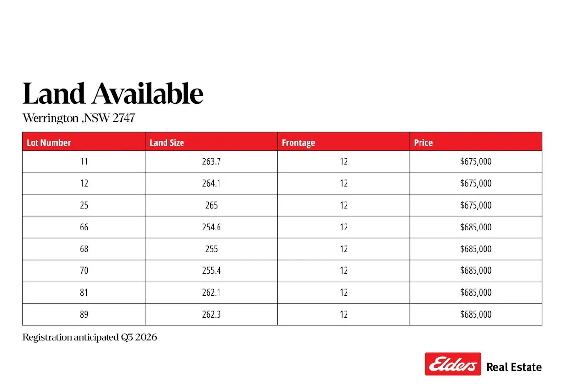 Discover from 8 lots on Great Western Highway in the well established Werrington community a perfect blank slate for your vision, whether you're dreaming big or planning a smart future move.Positioned in a suburb with excellent connectivity via train, buses and major road links like the Great Western Highway and M4 Motorway everything Western Sydney has to offer is within reach.